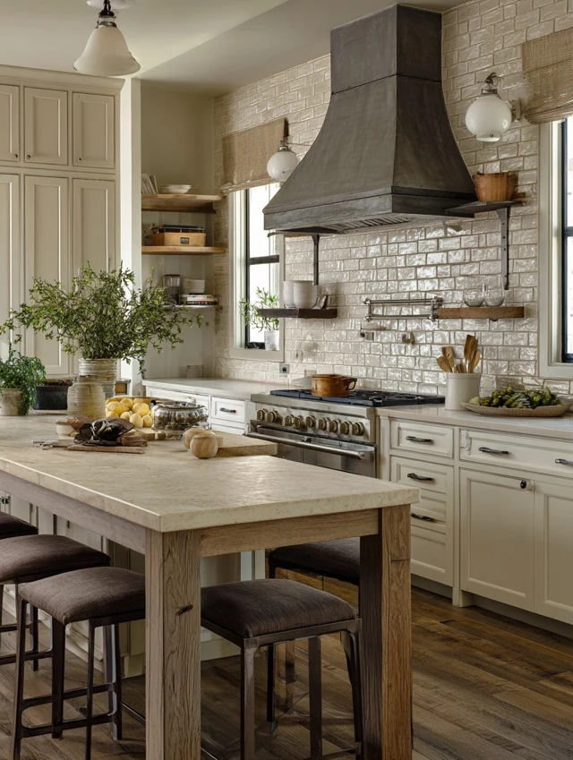 Neutral kitchens rely on texture—wood, linen, stone—to keep the space alive.